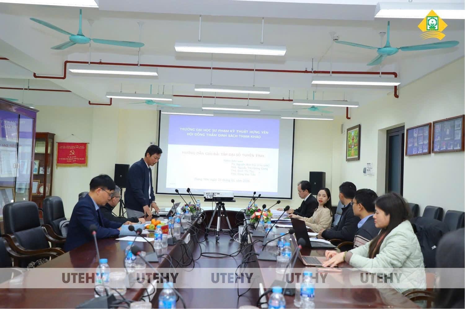 Căn cứ Quyết định số 2229/QĐ-ĐHSPKTHY ngày 29/12/2025 của Hiệu trưởng Trường Đại học Sư phạm Kỹ thuật Hưng Yên, Hội đồng đã tiến hành thẩm định cuốn sách tham khảo với tựa đề: “Hướng dẫn giải bài tập Đại số tuyến tính”.